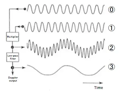 Le signal envoyé est multiplié avec le signal qui revient pour créer la différence de fréquence et savoir le doppler shift