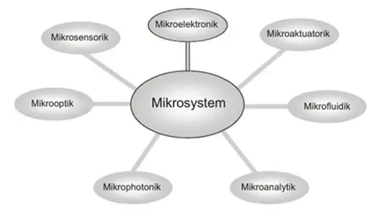 Microsystem: sensor actuator, data treatment with interface to the outside
